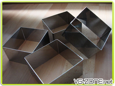 Sur une assiette munie d’une feuille de papier sulfurisé, déposer les deux petits nonnettes de forme carré (dim. 45×45, H 80 mm) , à l’aide d’une cuillère à soupe, les remplir à parts égales de mélange de biscuits. Bien tasser au maximum pour avoir une fine couche (+/-5 mm d’épaisseur). Petite astuce pour aplatir au maximum, utiliser les doigts !