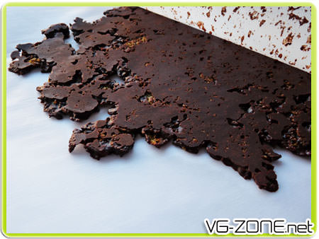 3. Verser la préparation sur une feuille de papier sulfurisé. Etaler légèrement puis couvrir d’une seconde feuille de papier sulfurisé. A l’aide d’un rouleau à pâtisserie, étaler les corn flakes afin d’obtenir une fine couche. (Voir photo)