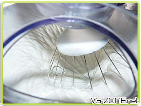Verser la soja du chef dans le robot avec le fouet et monter la puissance au maximum. Laisser battre le temps de préparer la suite. (Voir photo)